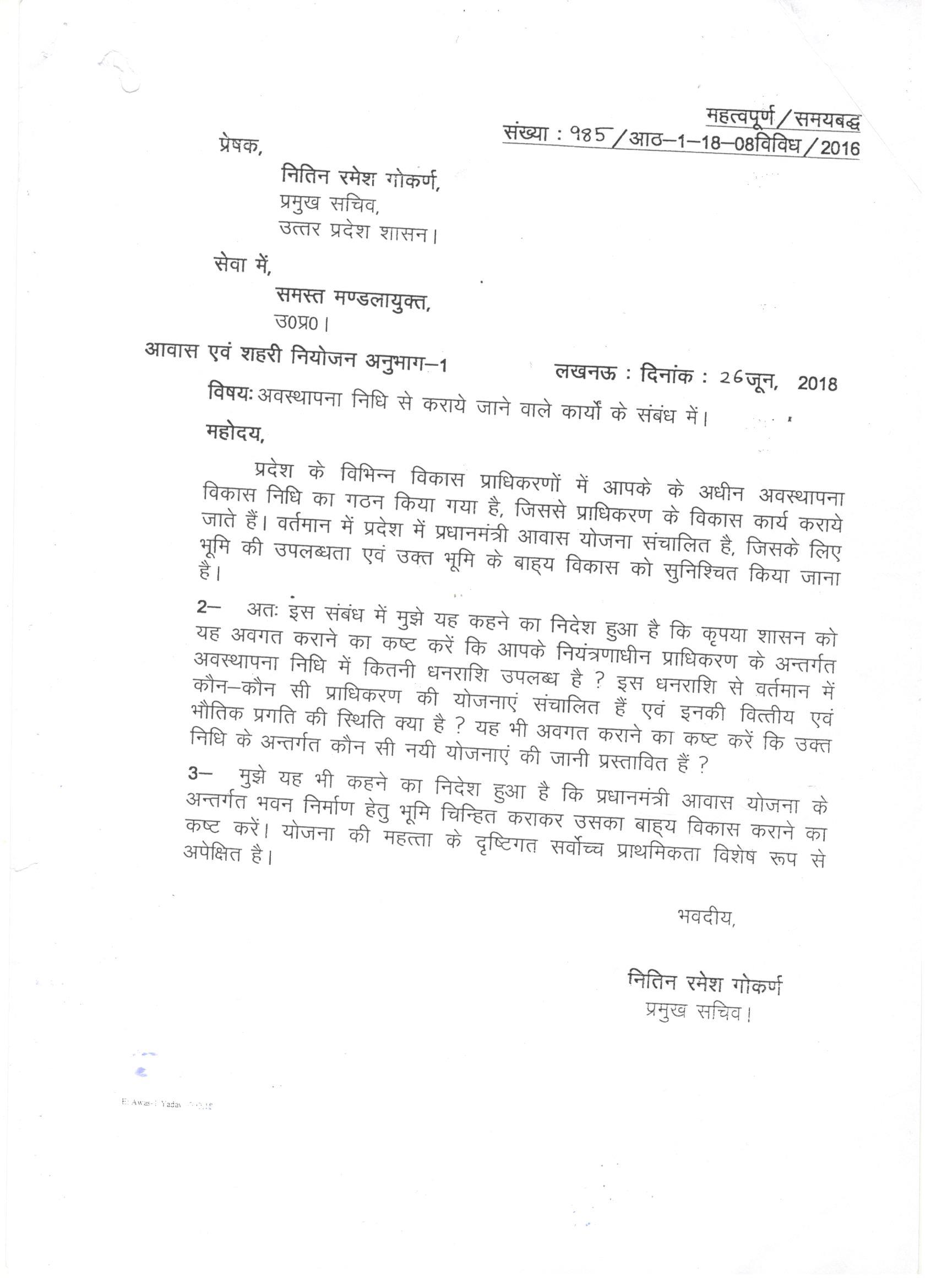 | 10 | 985/8-1-18-08Vividh/2018 | 26.06.2018 | Use of Infrastructure Fund | PMAY |
